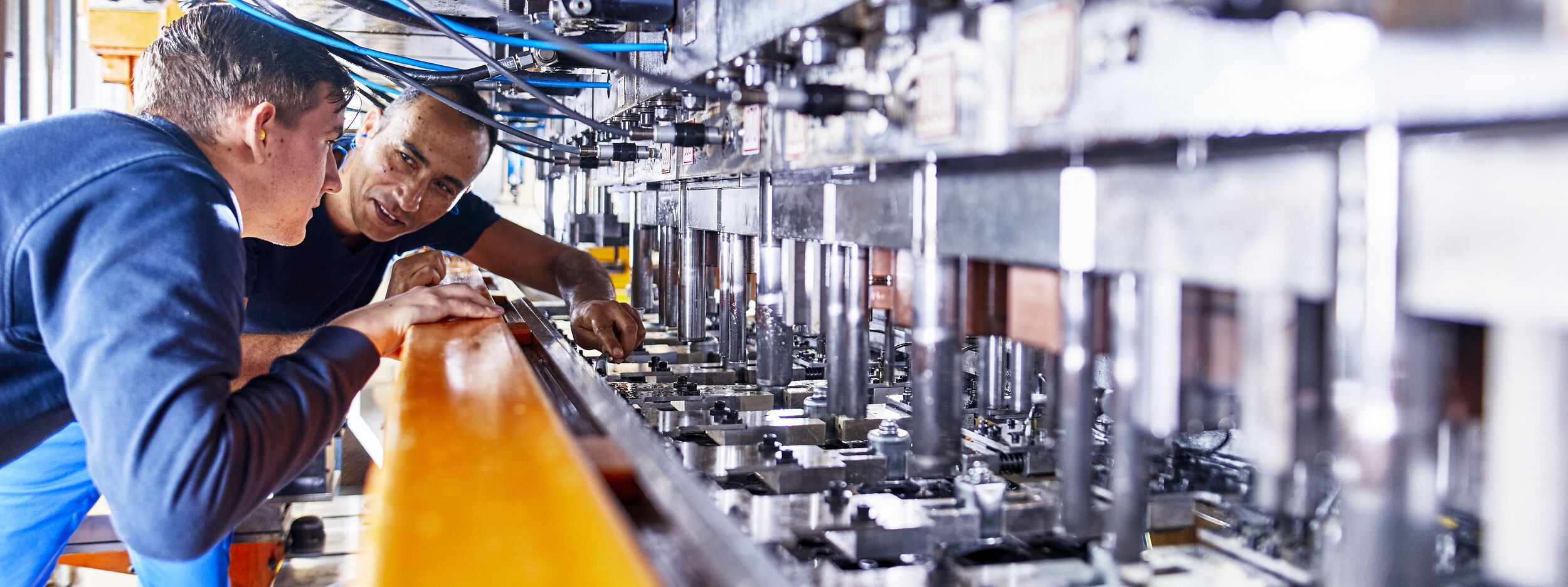 Wo mittlere Umformungen gefragt sind oder Kombinationen mit Horizontalbearbeitungen wie Bohren oder Prägen benötigt werden, ist die klassische Transferfertigung die erste Wahl.